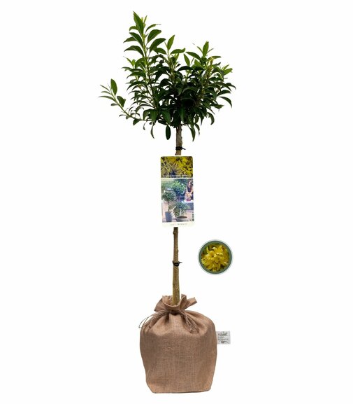 De Forsythia intermedia 'Nimbus' is een prachtige sierheester op stam. Hij staat in Nederland ook wel bekend onder de naam Chinees Klokje, die hij aan zijn opvallende klokvormige bloemen te danken heeft. Deze bloemen zijn felgeel van kleur en trekken bijen en vlinders aan in de tuin. Daarbij is het Chinees Klokje een van vroegste bloeiende heesters. Hij bloeit namelijk in maart tot april al volop, nog voordat het blad aan zijn takken verschijnt. Verder staat deze Forsythia Nimbus het liefst in de zon of een plekje met lichte schaduw. Plaats hem in de volle grond of in een bloempot op het terras. Zorg daarnaast voor een vochtige, maar goed doorlatende grond en hij zal op zijn mooist bloeien.